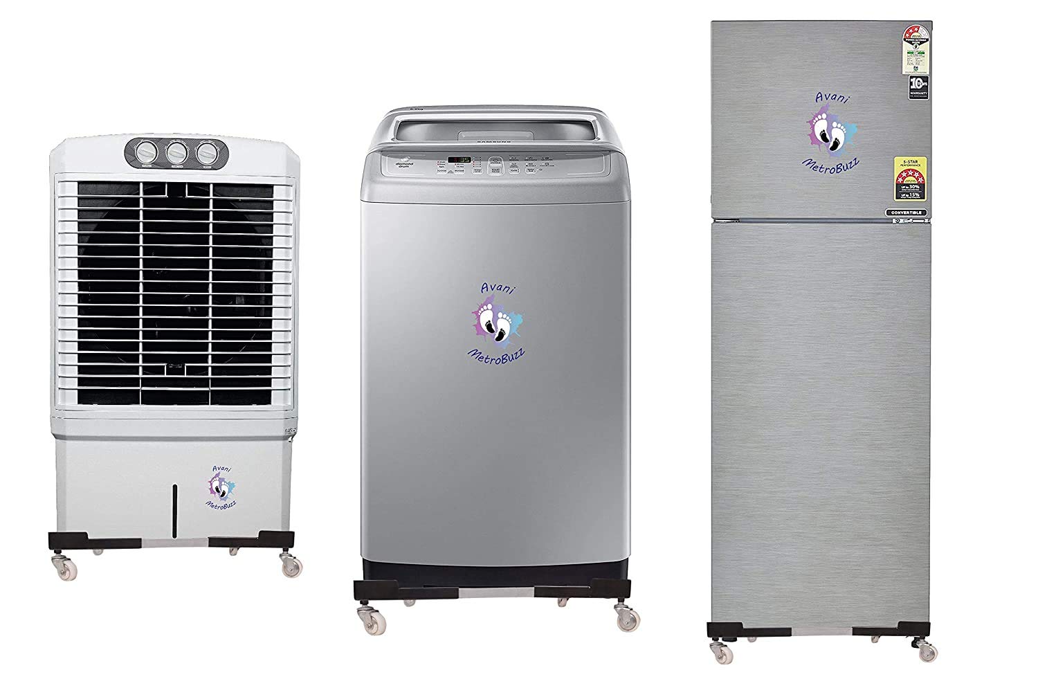 It has a maximum weight limit of 80KGS and is easy to assemble.It use button-type lock,not need screw.This adjustable dolly has rubber swivel wheels that make moving heavy objects a breeze, and the eight rear locking wheels ensure your furniture will not roll. HIGH-GRADE DURABLE MATERIALS White high-strength PP plastic and high-quality stainless steel pipe composition, resistance to air, steam, water and other weak corrosion. SAFETY DESIGN Each rubber wheel has a brake to ensure that you can keep the refrigerator / washing machine safe anywhere.